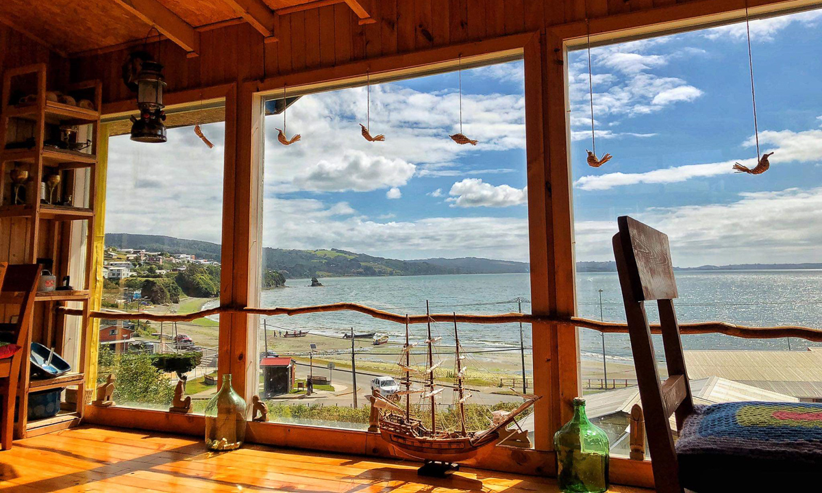 La propiedad cuenta con vistas panorámicas con todo el marco del mar en su plenitud sobre la bahía de Ancud a través de sus habitaciones.